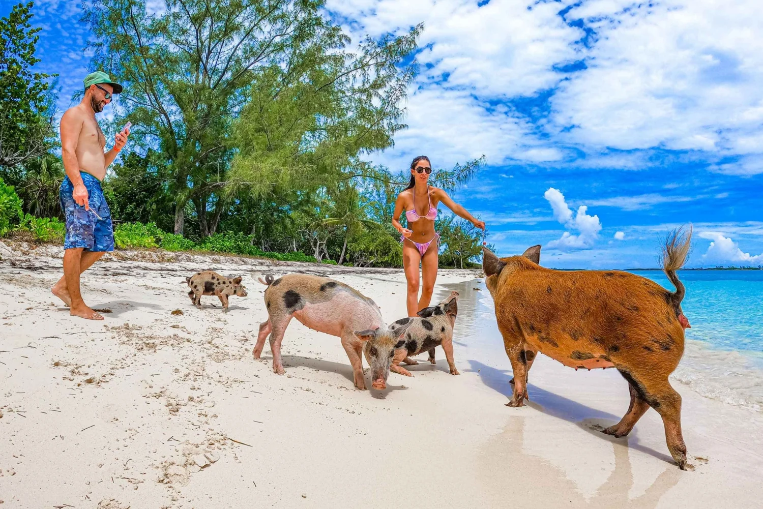 The swimming pigs at Athol Island is only 25 minutes outside of Paradise Island, which leaves lots of time to ad on some snorkeling and sightseeing. Athol Island is home to a colony of protected wildlife including Peacocks, Iguanas and of course, the world-famous swimming pigs. Dive into the ultimate tropical adventure with the Nassau Swimming Pigs Tours.